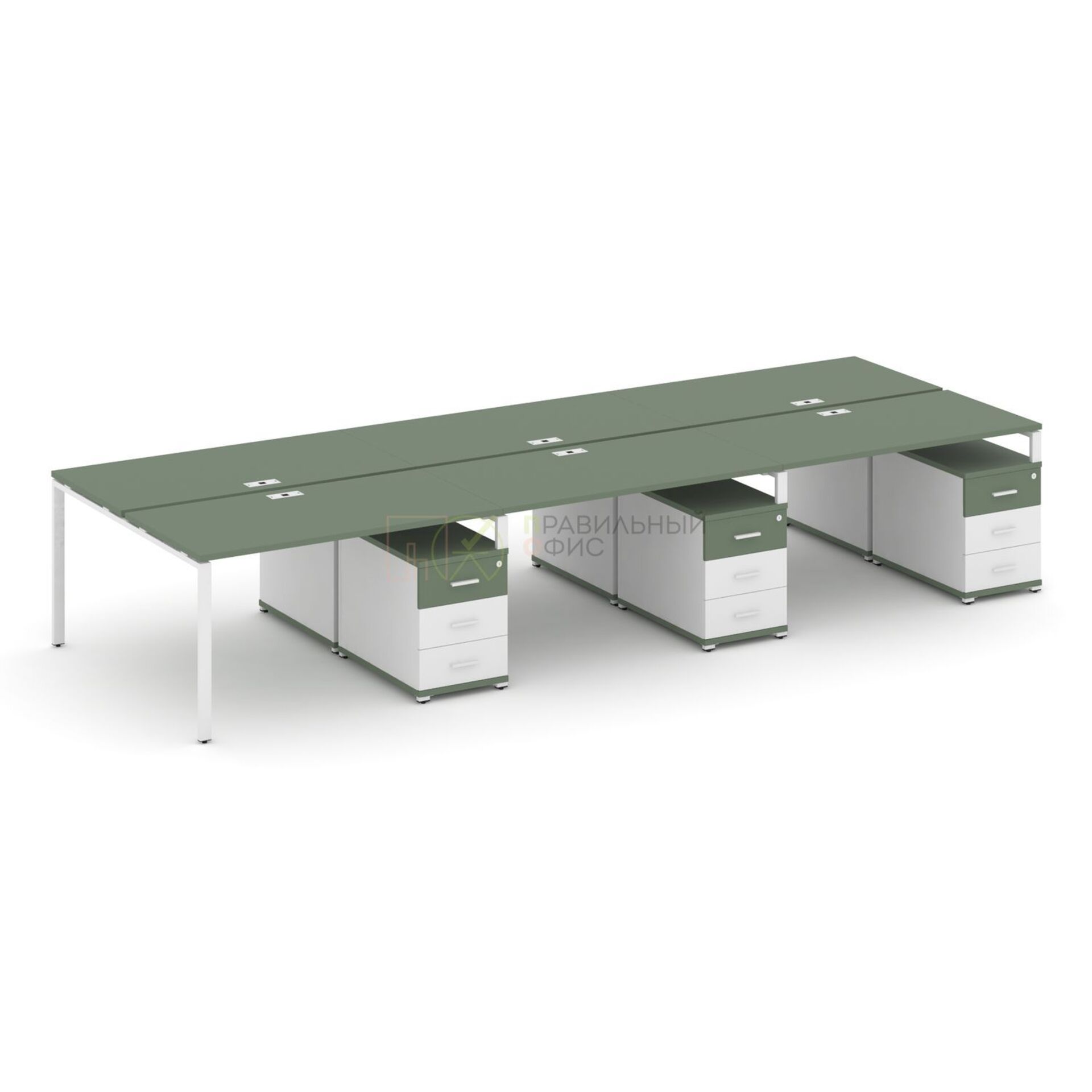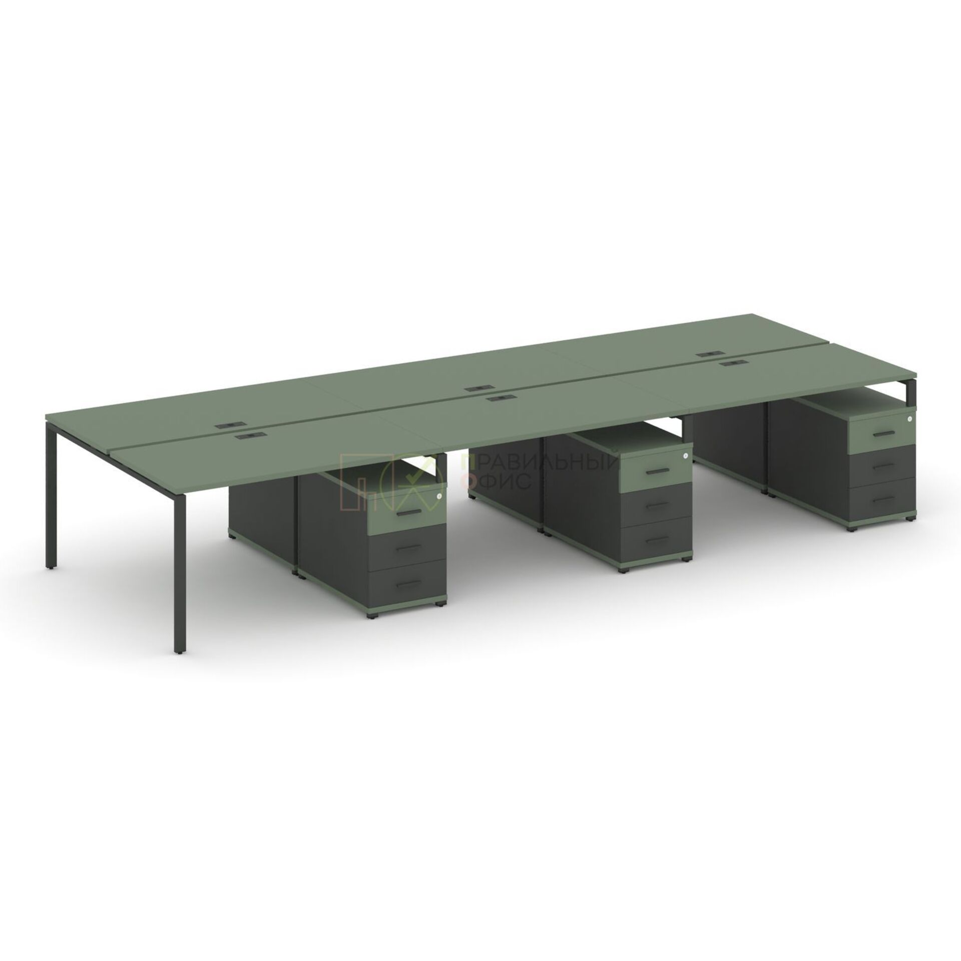 Рабочая станция на 6 мест с тремя двухсторонними опорными тумбами CN.DRS-350 A/B/W