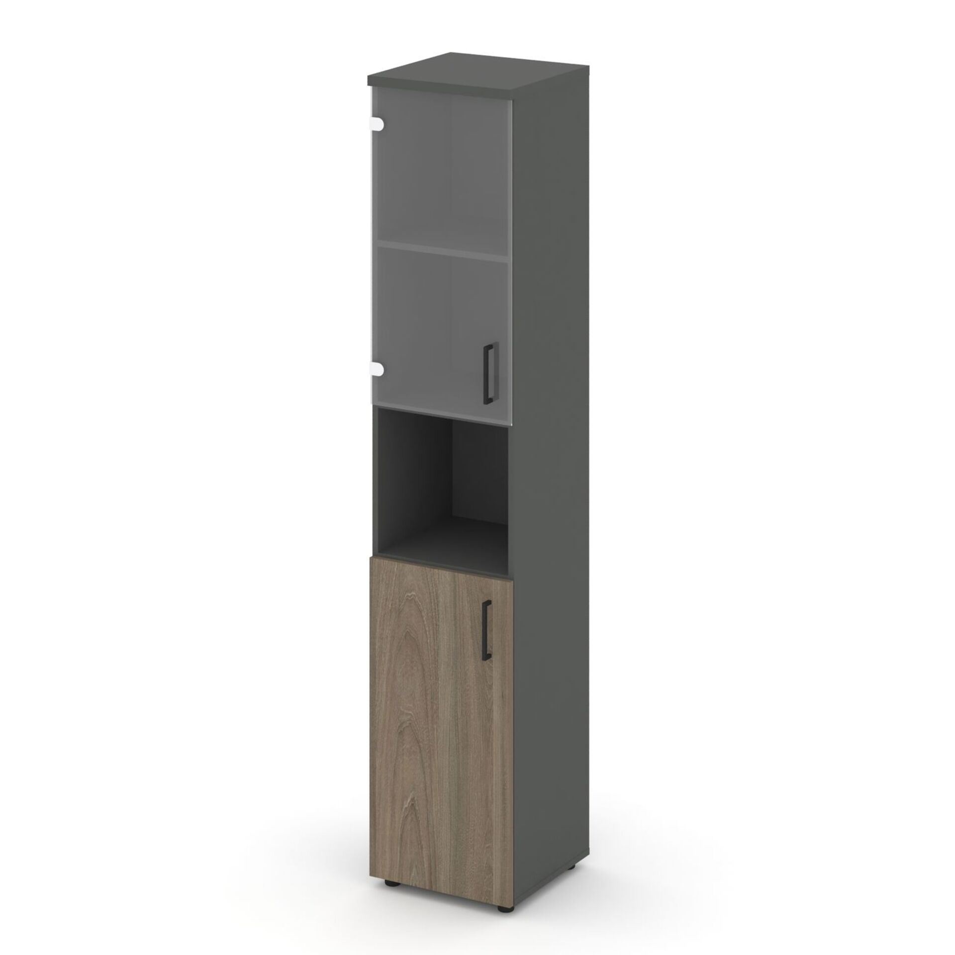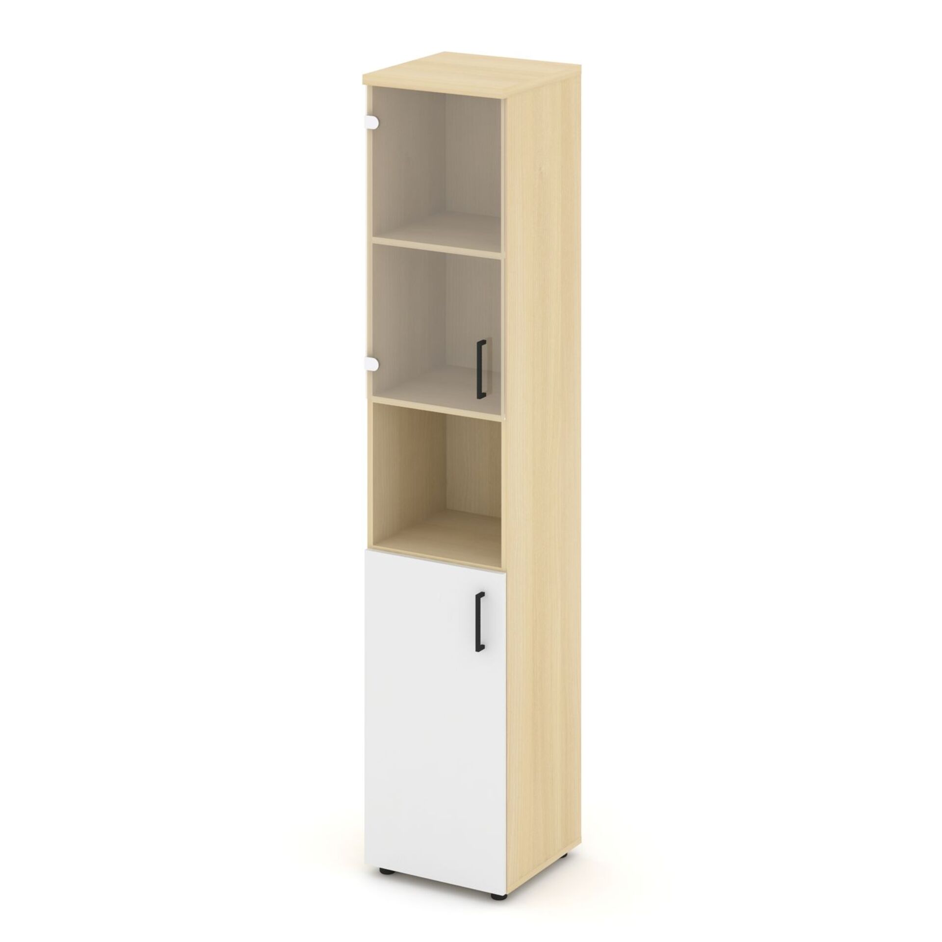 Шкаф высокий узкий левый (1 низкий фасад ЛДСП + 1 низкий фасад стекло прозрачное) SN.STU-105(L)