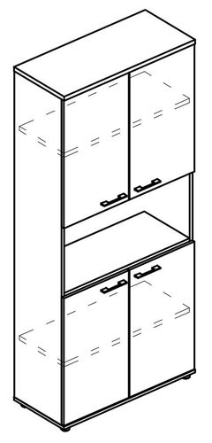 Шкаф для документов 4-х дверный с открытой нишей (топ ДСП) МР 9474
