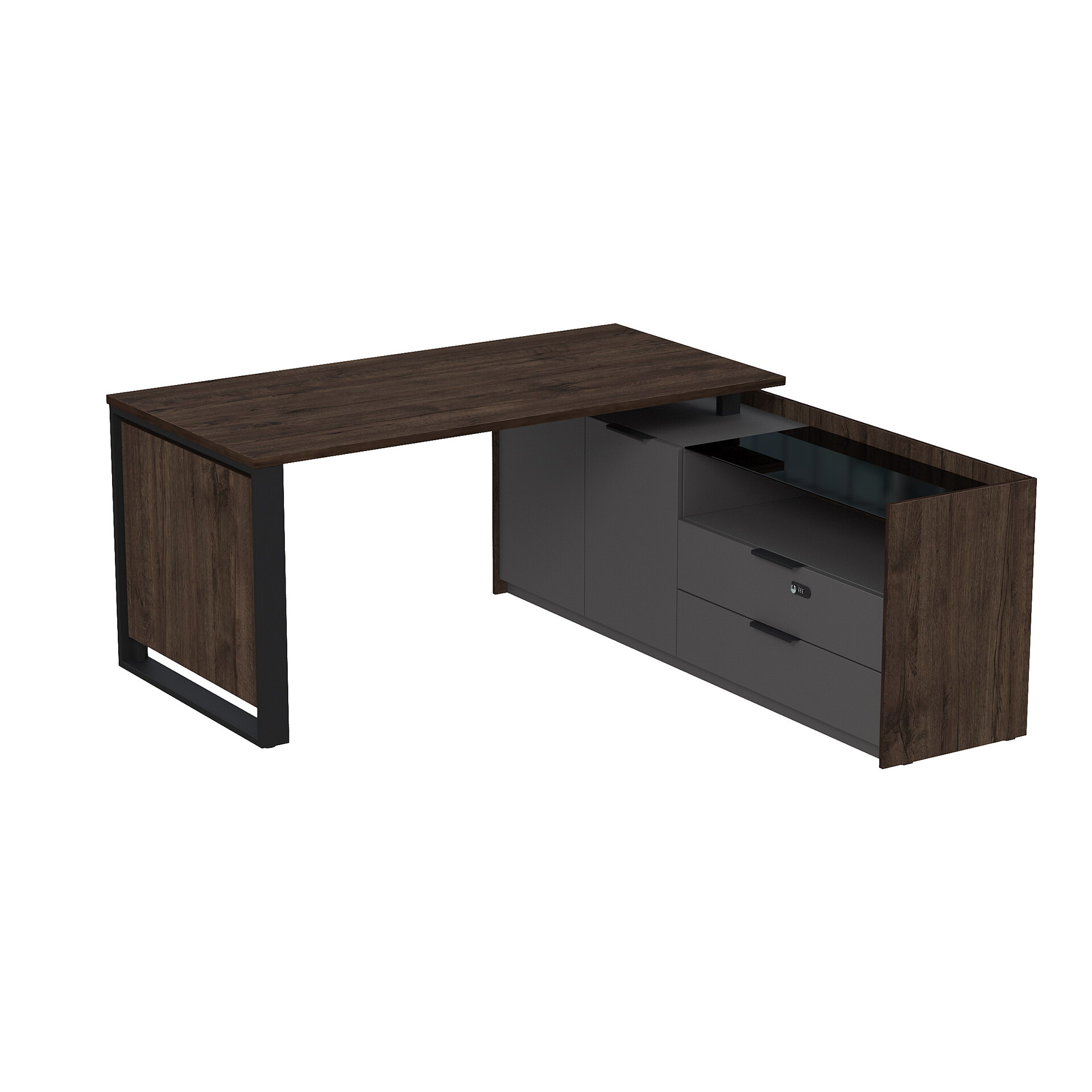 Стол рабочий на опорной двусоставной тумбе, с ящиками, с код замком 15СОД-КЗ-ШД.1608