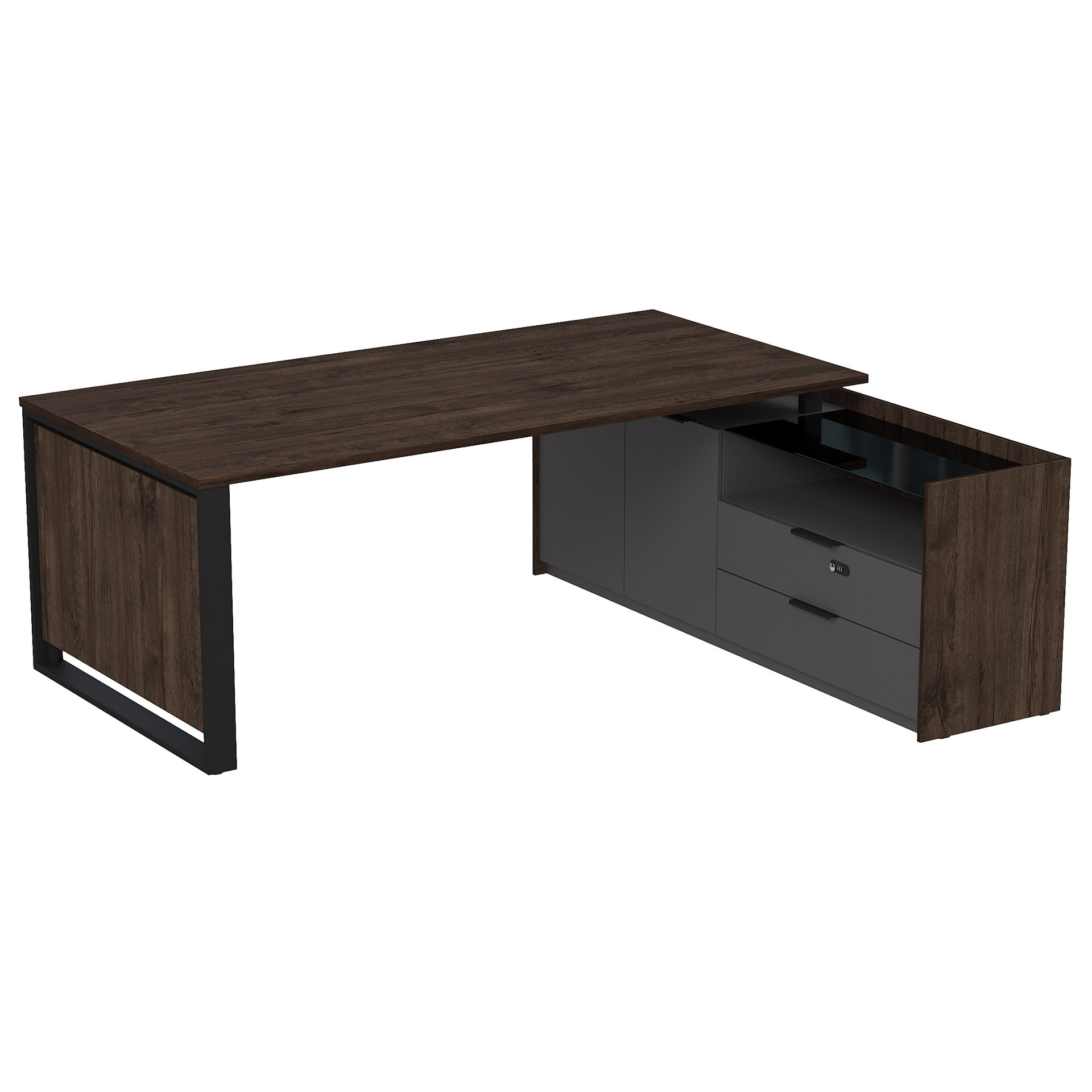 Стол рабочий на опорной двусоставной тумбе, с ящиками, с код замком 15СОД-КЗ-ШД.2010