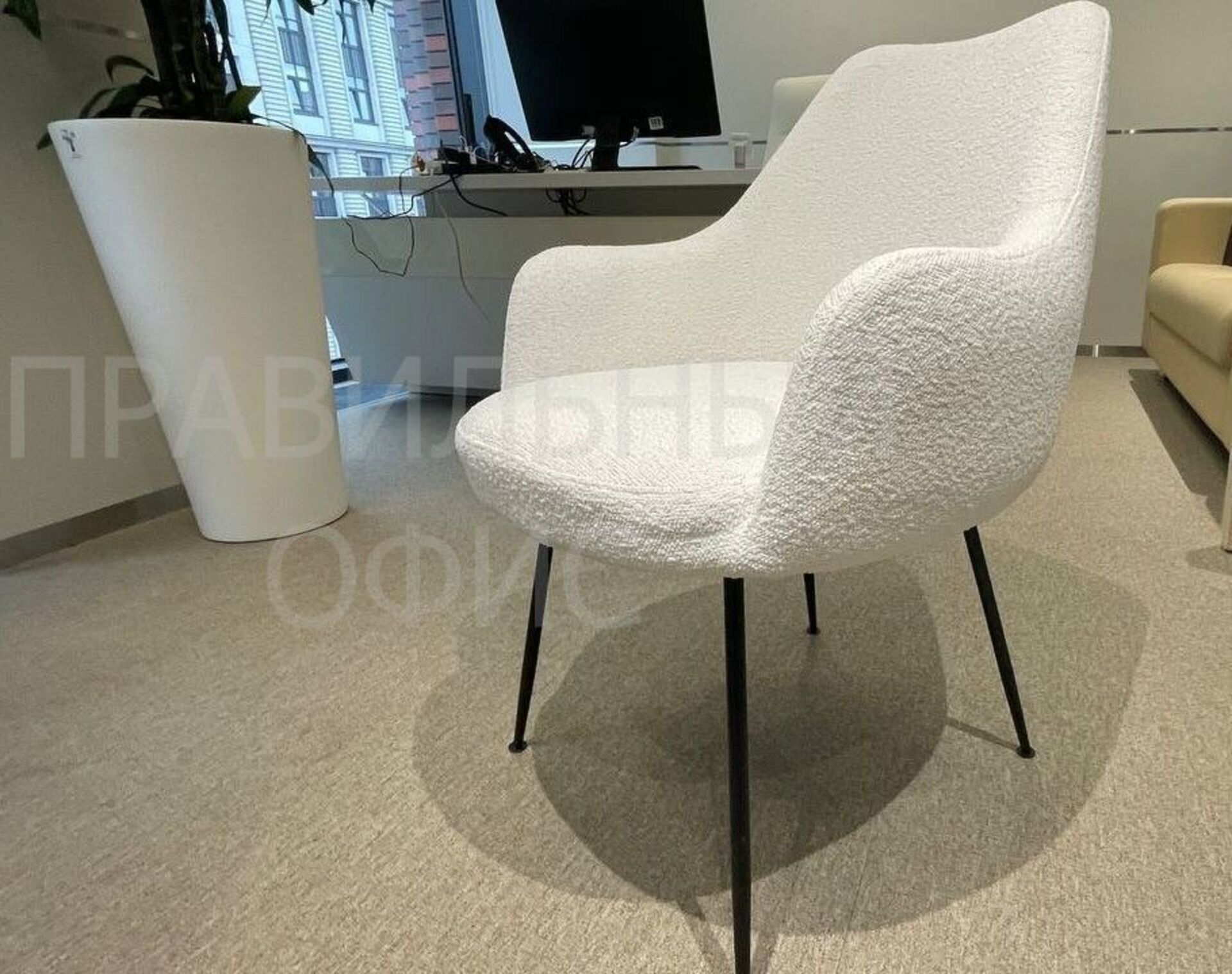 1. Гостевые кресла Floret с текстильной обивкой в стиле букле. Эргономичная спинка и подлокотники обеспечивают комфорт во время длительных встреч.