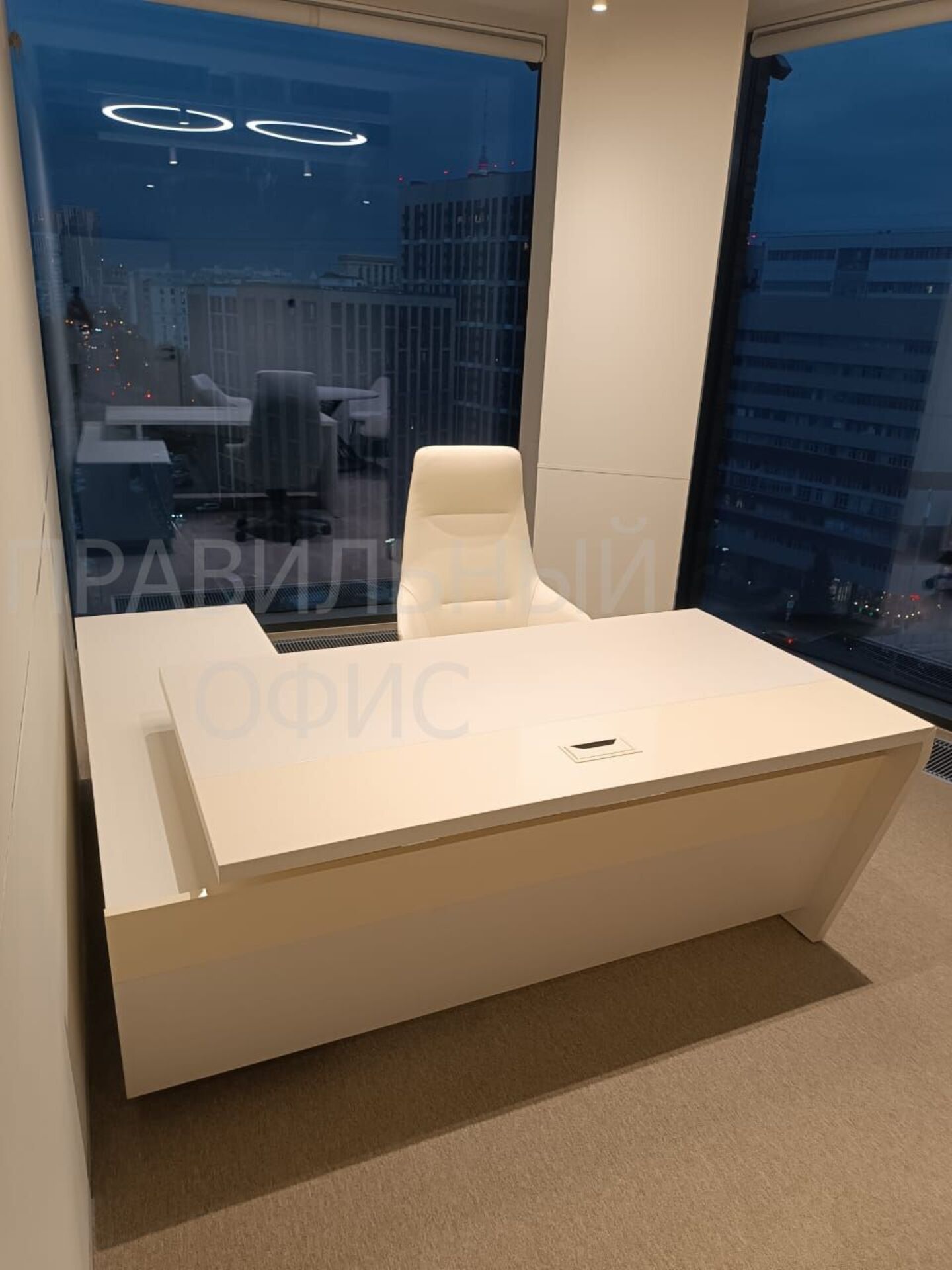 Наша команда реализовала масштабный проект по оснащению 14 кабинетов для топ-менеджеров на основе серии мебели для кабинета руководителя Corner в эксклюзивном цвете «Белый Фарфор».