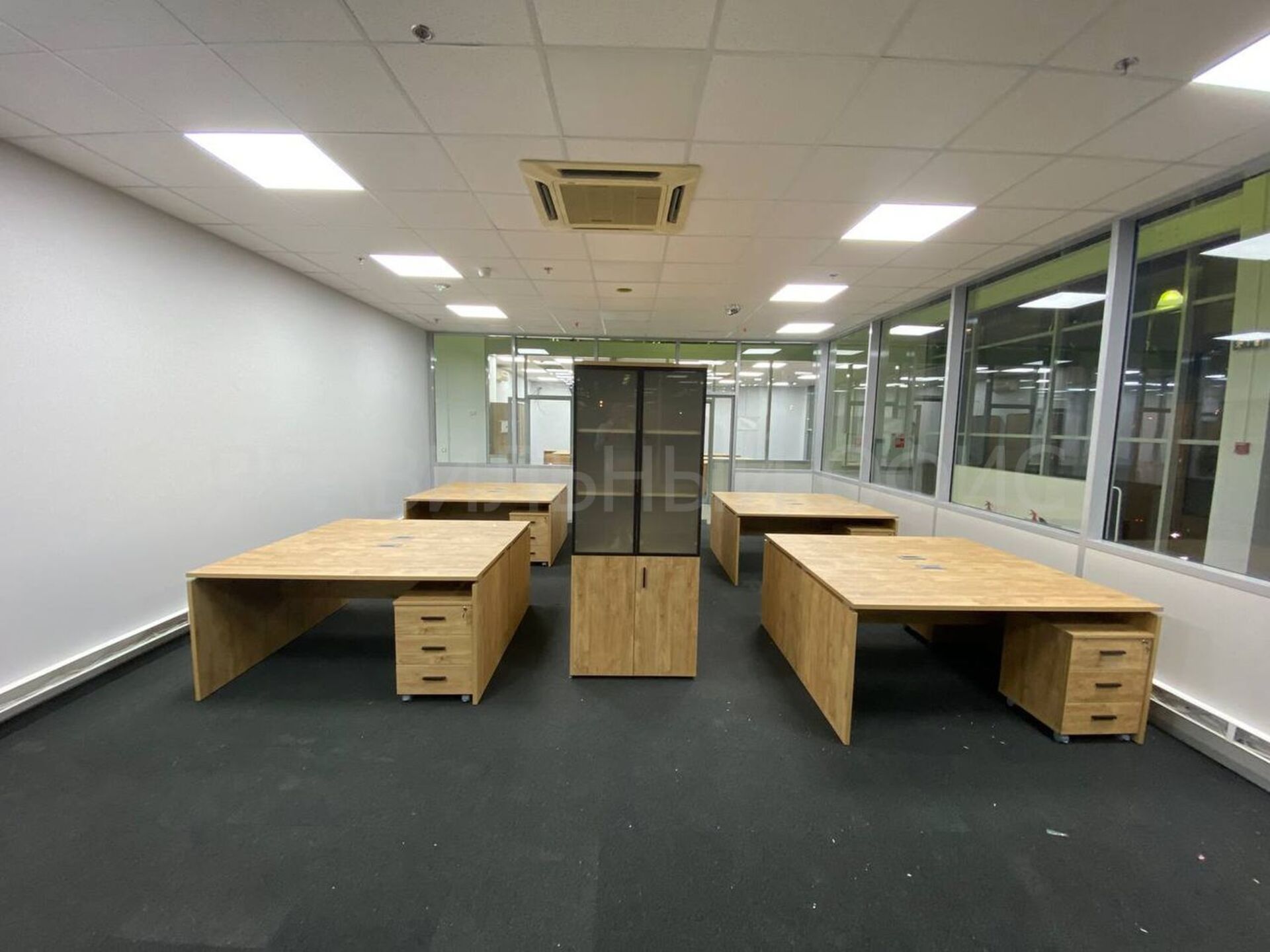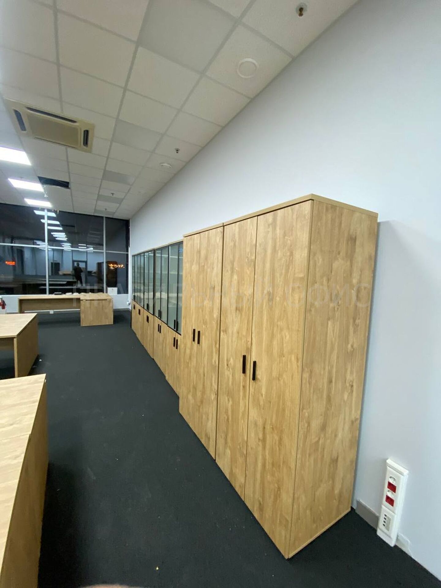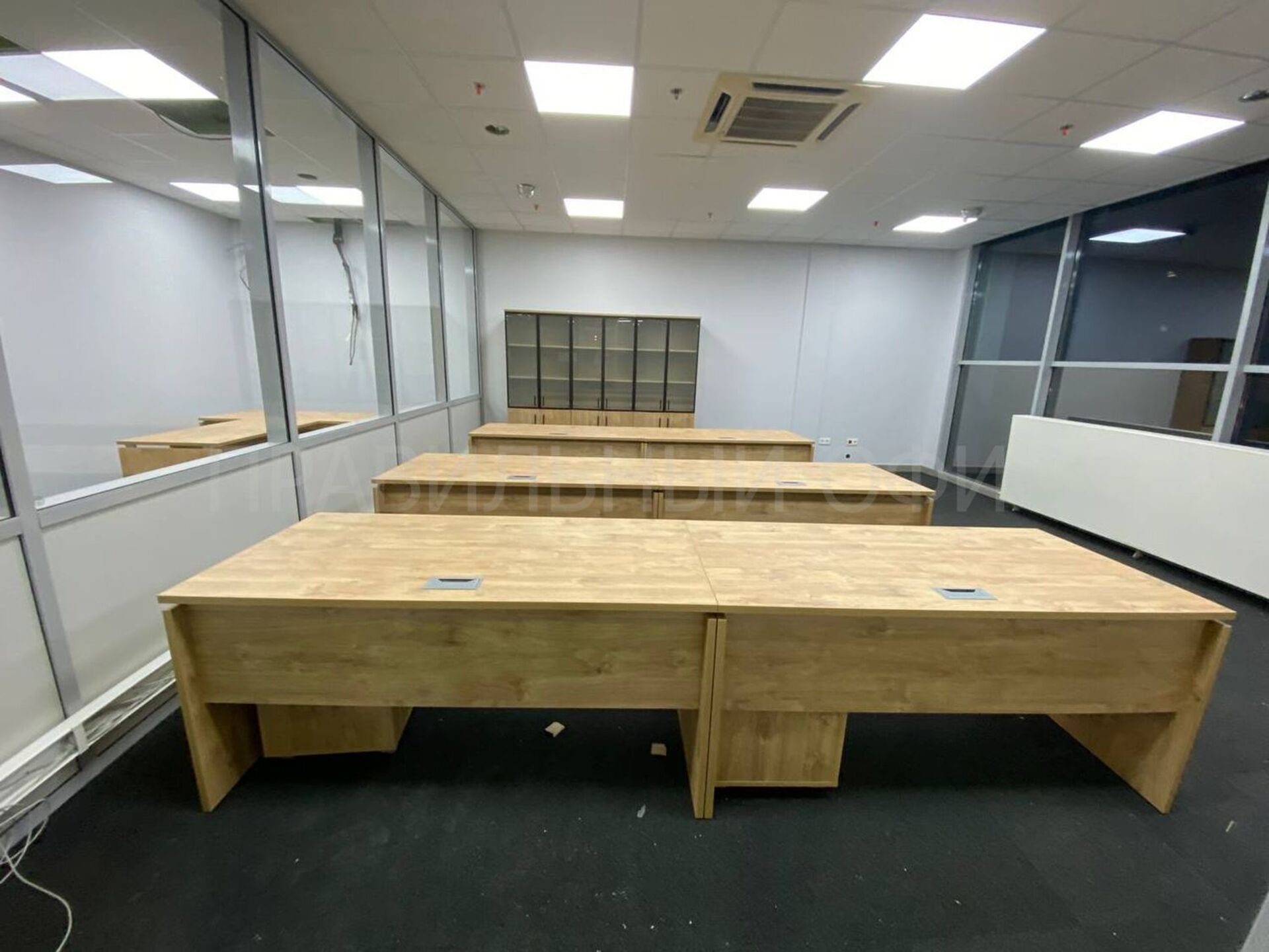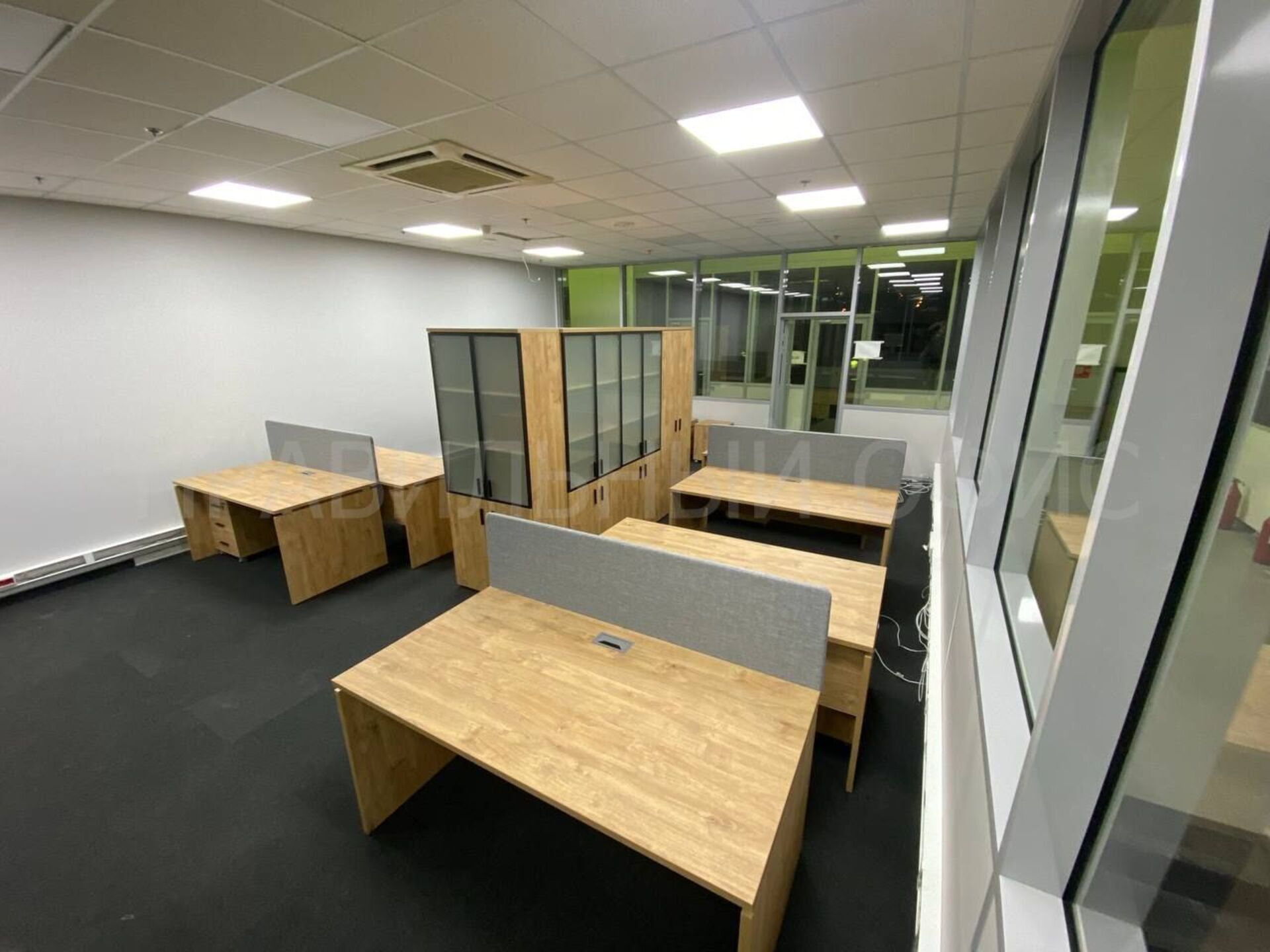 В конечном итоге проект включает в себя 58 столов на опорах ЛДСП, 58 мобильных тумбочек с центральным замком для хранения личных вещей сотрудников, 29 шкафов со стеклом для организации документации, 11 гардеробов для одежды, 6 тумбочек под оргтехнику и 6 брифингов, что позволяет осуществлять оперативное взаимодействие и обсуждение рабочих вопросов.