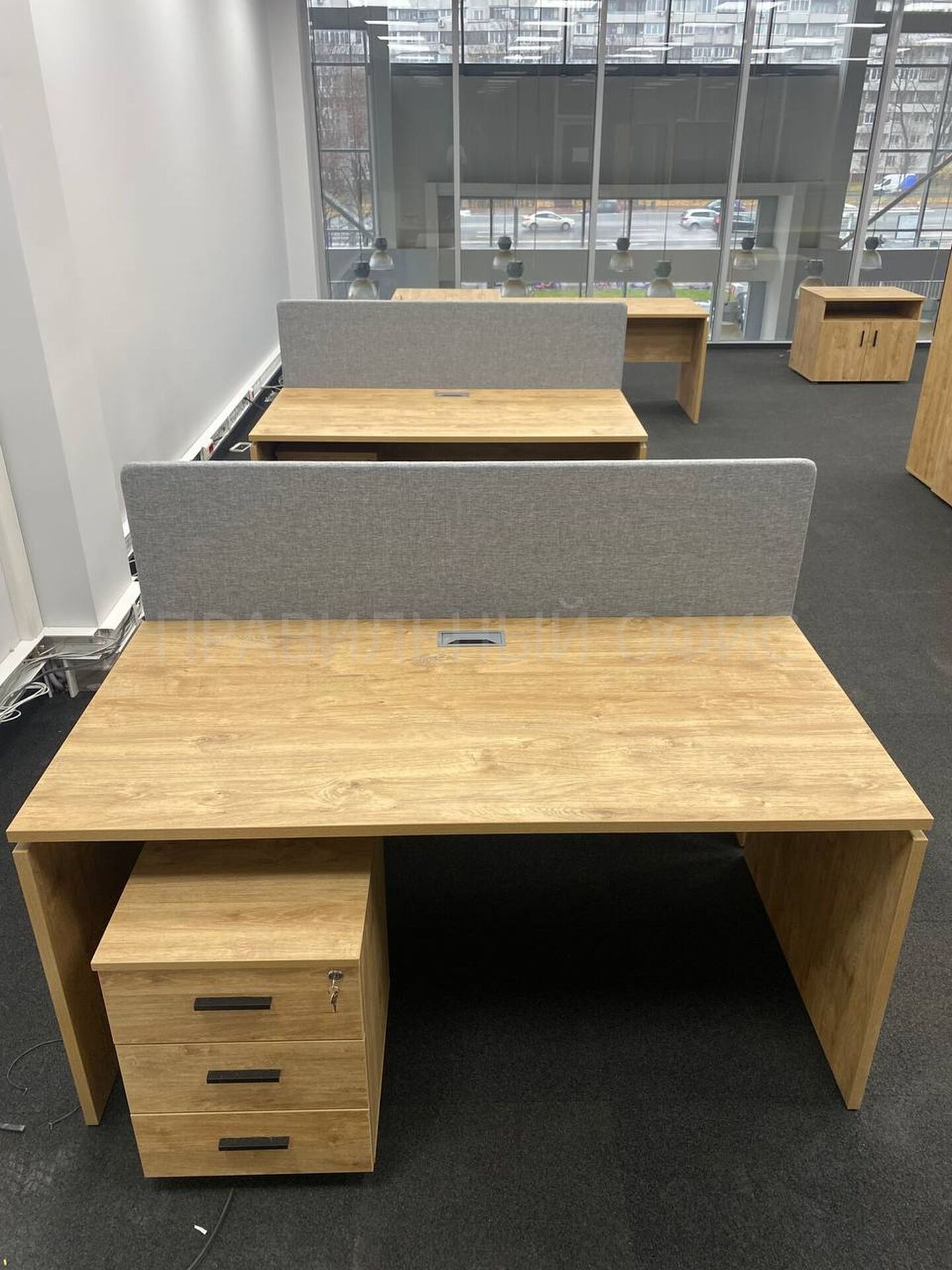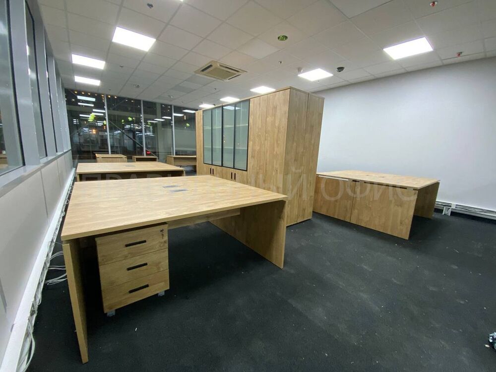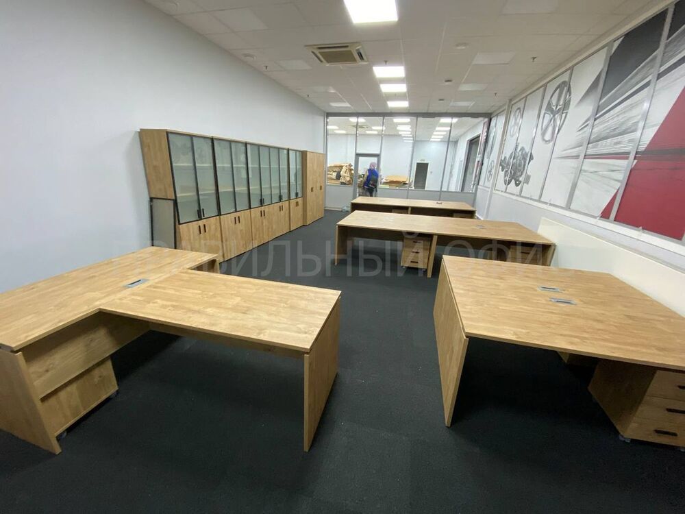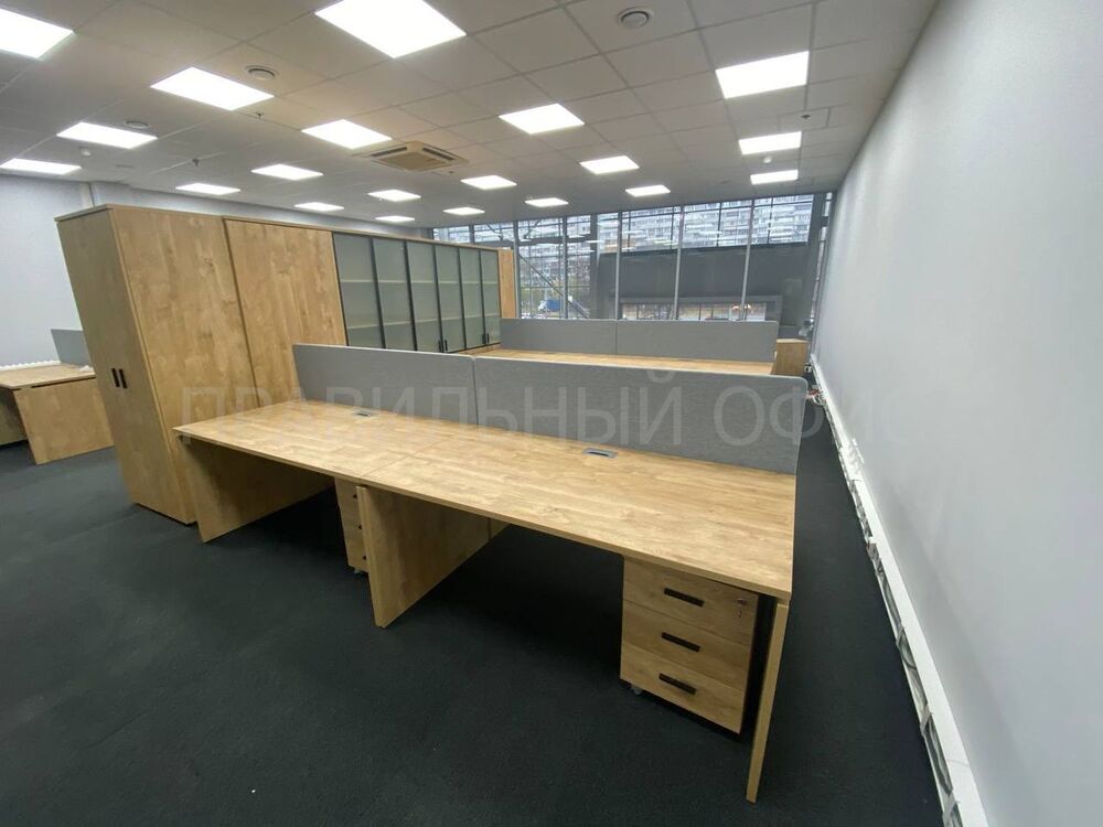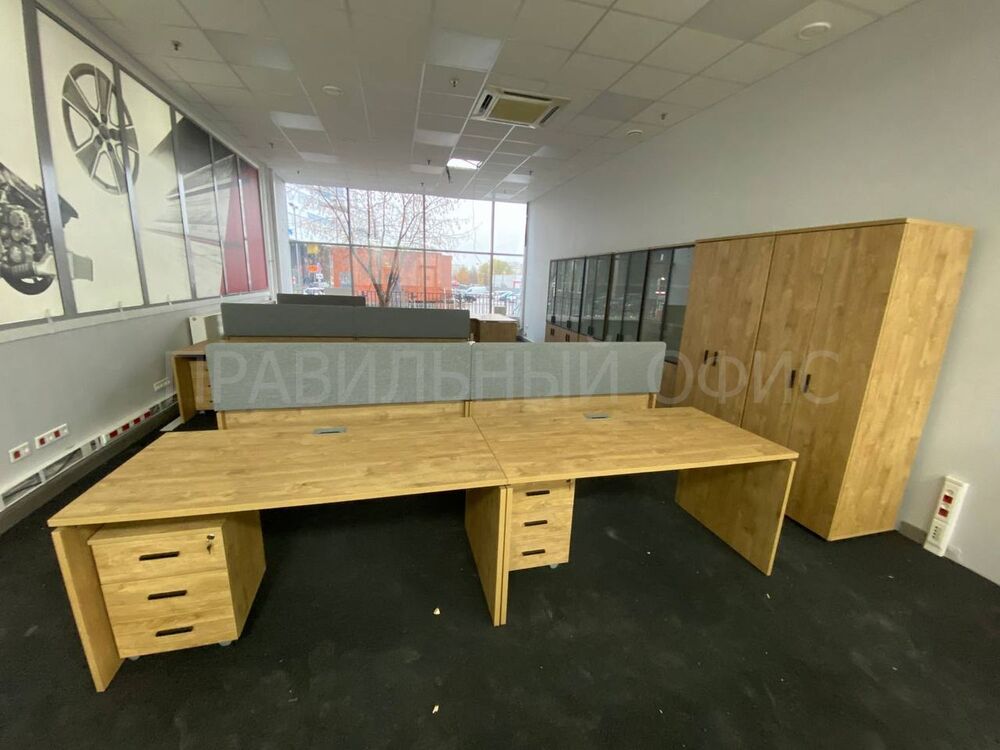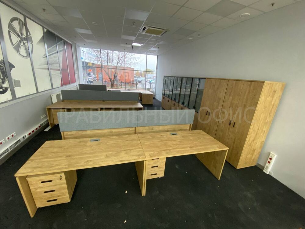 Для оснащения новых рабочих мест была выбрана качественная серия мебели Onix на опорах ЛДСП в цвете Тиквуд Светлый. Эта серия известна своей прочностью, привлекательным дизайном и функциональностью. Однако уникальность данного проекта заключается в индивидуальных изменениях, предложенных заказчиками. На основании предпочтений руководства был принят ряд решений для улучшения внешнего вида и удобства мебели.